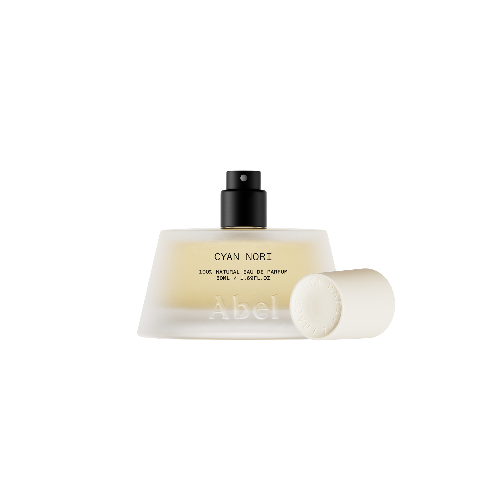 Cyan Nori Eau de Parfum by Abel is a salty-sweet aquatic fragrance. A burst of briny nori opens this outspoken directional scent, as effervescent white peach and tangerine float the transition to a vibrant skin musk dry-down.