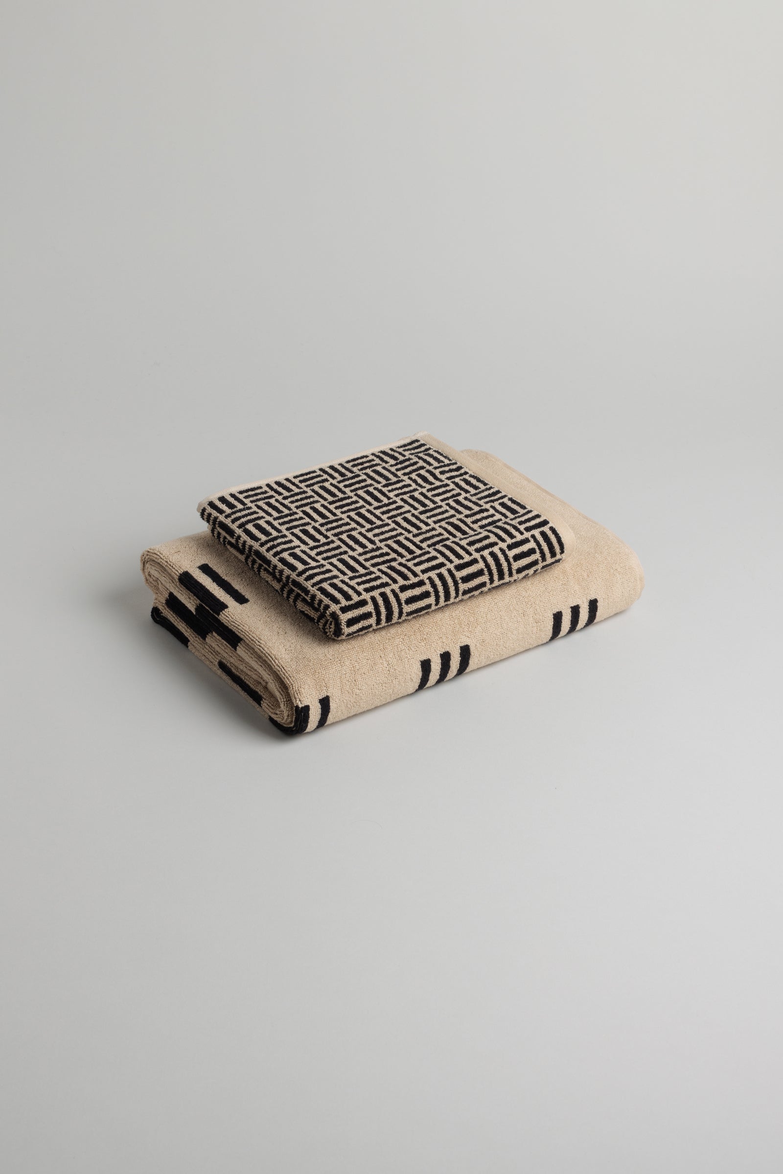 Conveying a sense off modernity sink side, the Torrens Hand Towel features a geometric weave print inspired by the rhythmic repetition seen in Art Deco tiling.