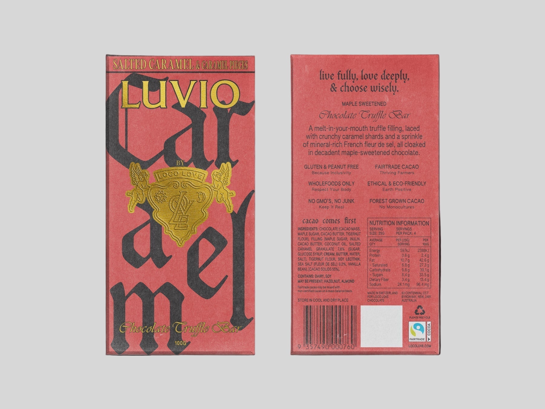 A cream truffle centre with light caramel notes, crisp caramel shards, and a trace of fleur de sel. Wrapped in maple-sweetened tigernut chocolate, it melts slow and stays soft. Beautifully balanced and ridiculously easy to love.
